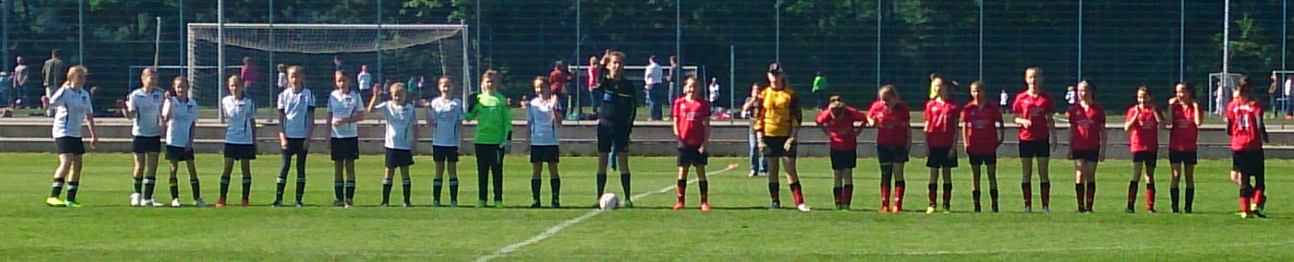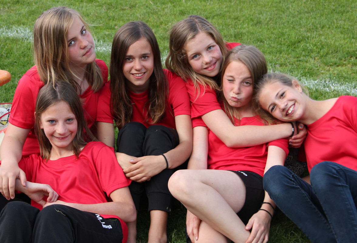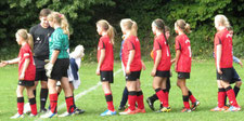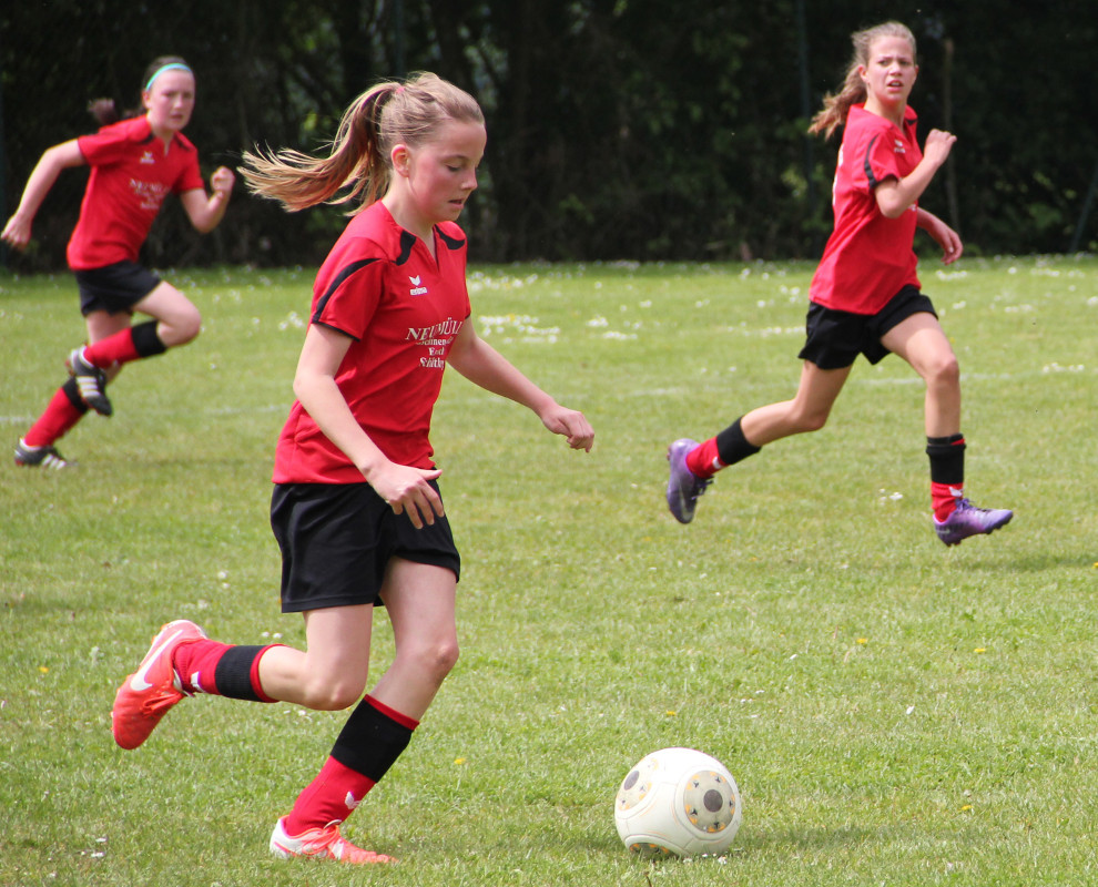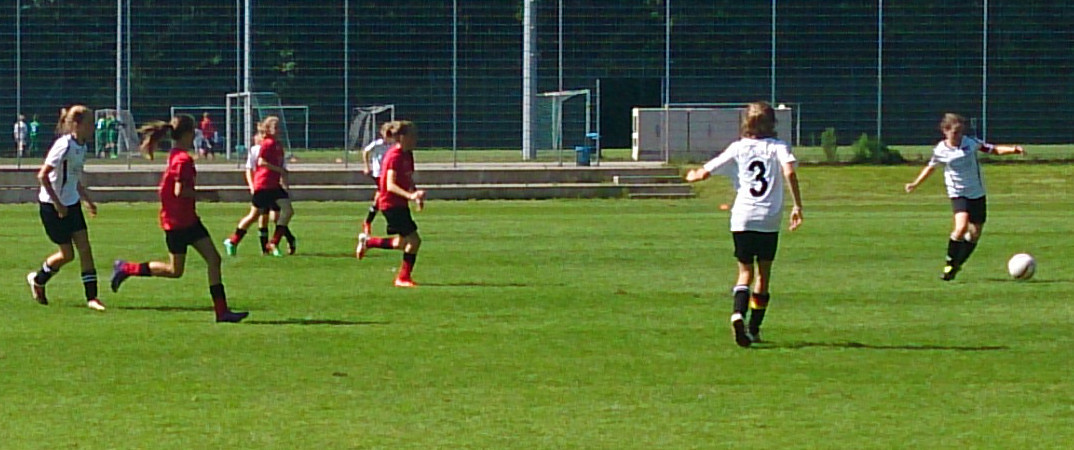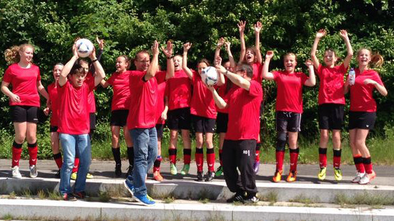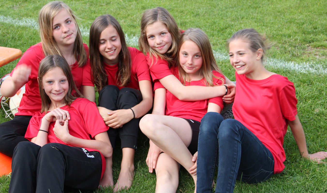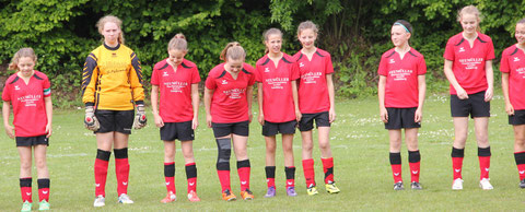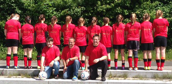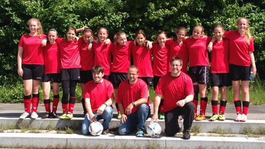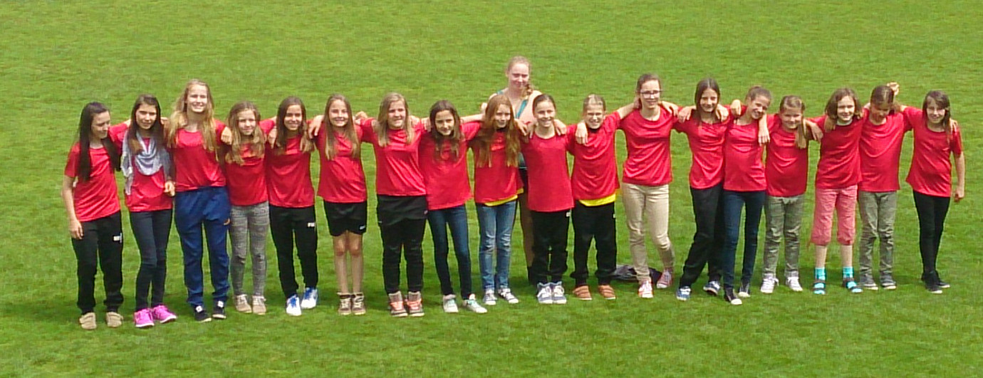 Die Mädchend unserer Spielgemeinschaft spielen in den roten Trikots;