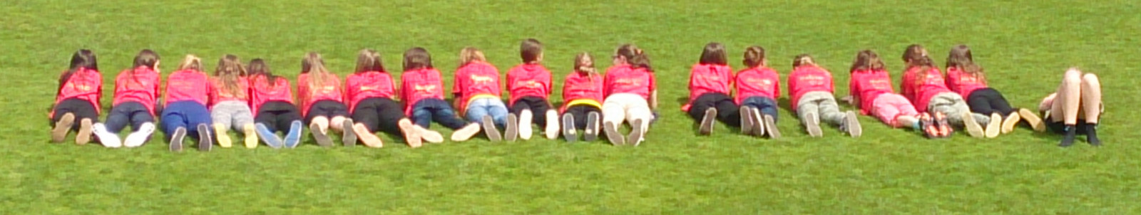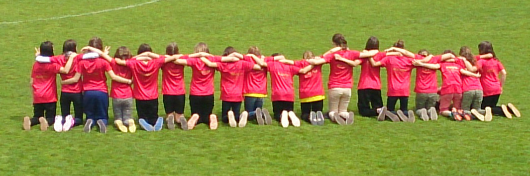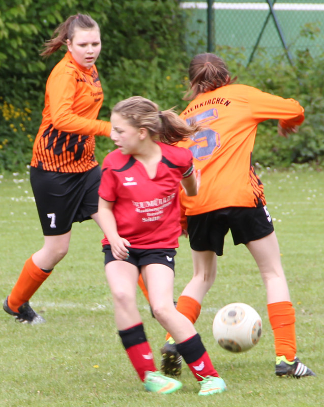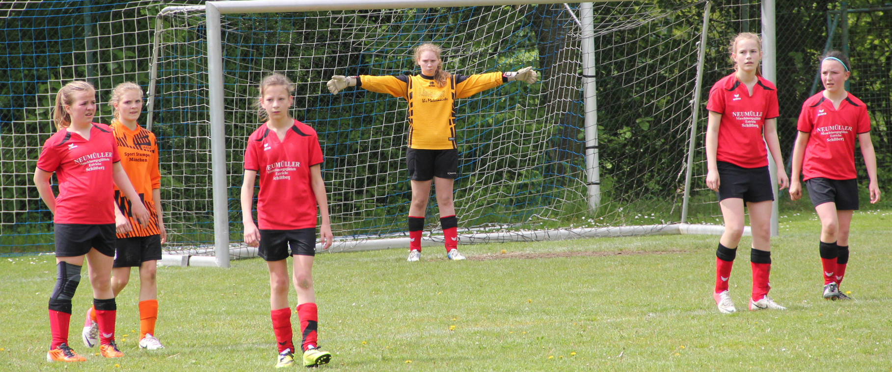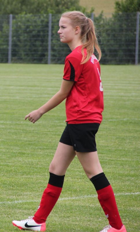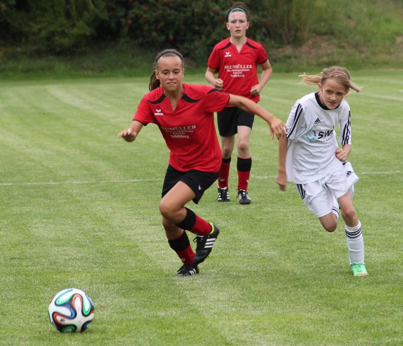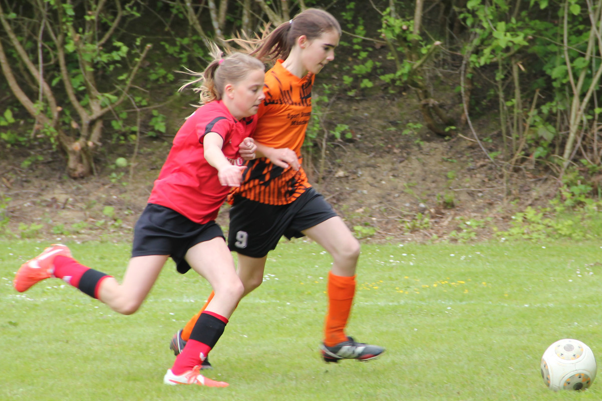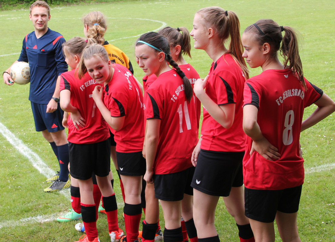 Die Mädchend unserer Spielgemeinschaft spielen in den roten Trikots;