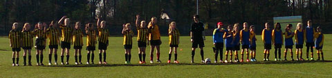 Der Sieg war eine schwere Geburt für uns. In der ersten Halbzeit hatten wir große Probleme mit dem Gegner und unserer eigenen Spielweise. Der Gegner stellte sich dicht hinten rein und ließ uns kaum Chancen durchzukommen. Doch auch wir selber machten es uns nicht leicht, da wir viel zu eng standen, die Bälle auf kurze Distanz teilweise vertändelt wurden und nicht die Breite des Spielfeldes nutzten. So fingen wir uns nach 15min durch einen Konter das 0:1 ein. Wir versuchten weiter Druck zu machen und nach 24min. konnten wir durch Melissa den Ausgleich erzielen, was gleichzeitig den Halbzeitstand bedeutete.