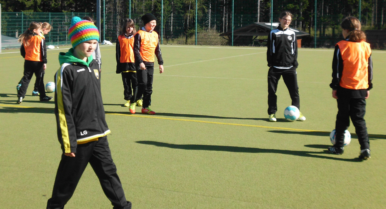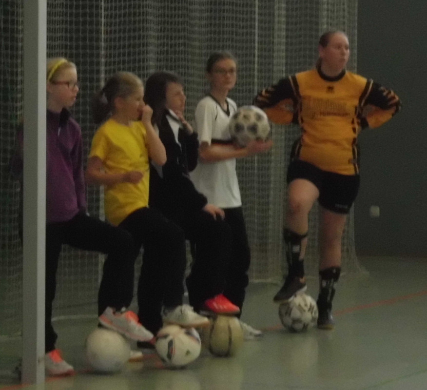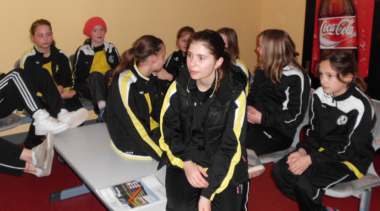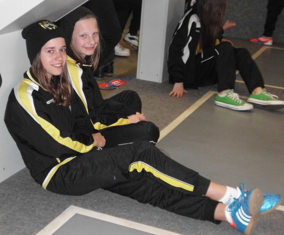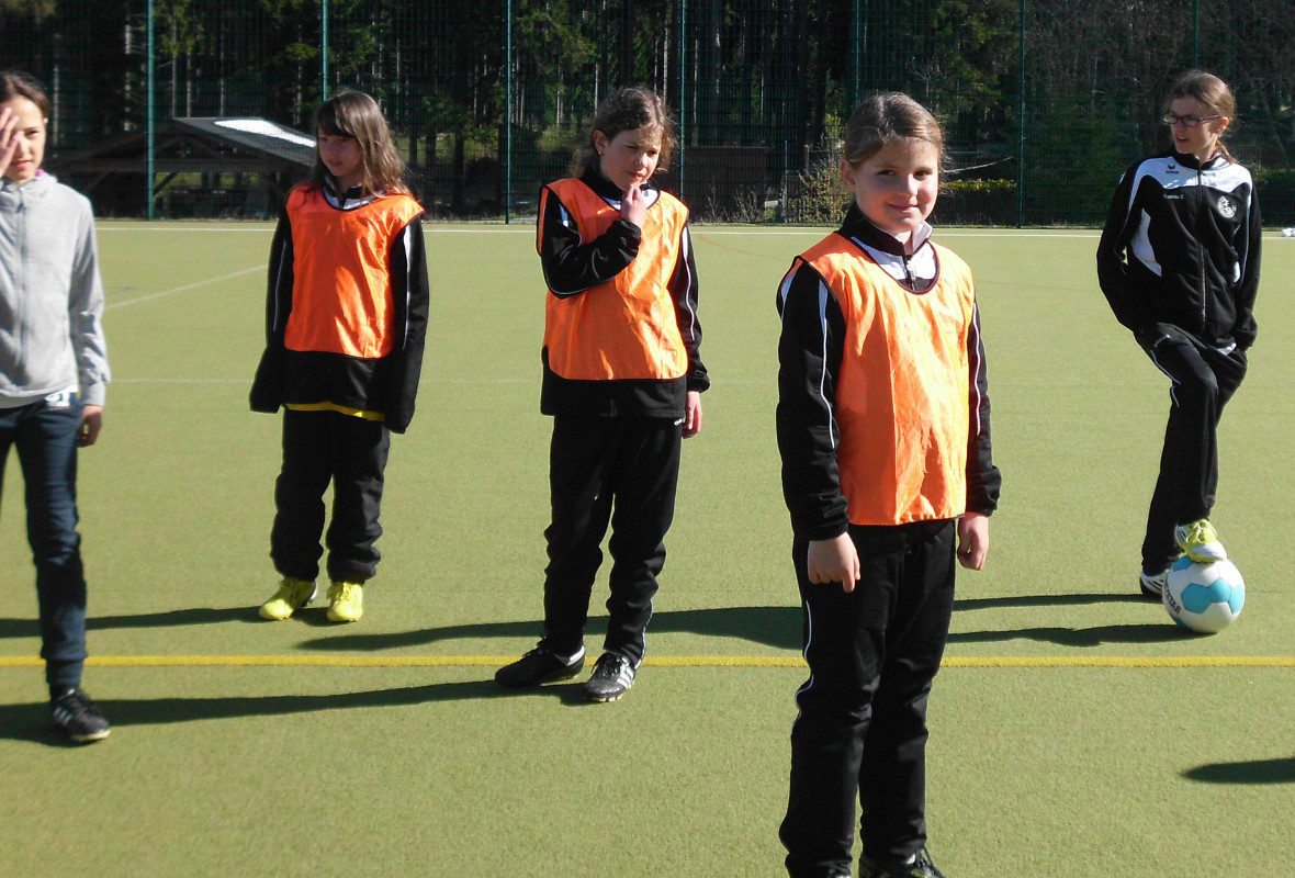 Kabine und zudem auch nur 15 Trikots hatten, trafen wir die Vereinbarung, dass zwei Mädchen (Teresa und Annika) von uns den Gegner unterstützen. So konnten wir doch noch unser 9gegen9 Spiel