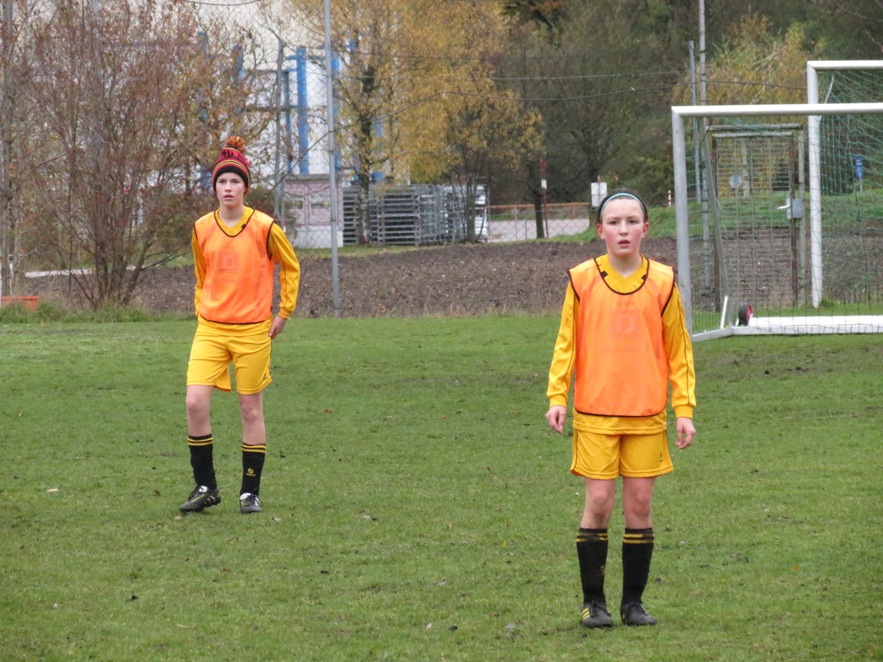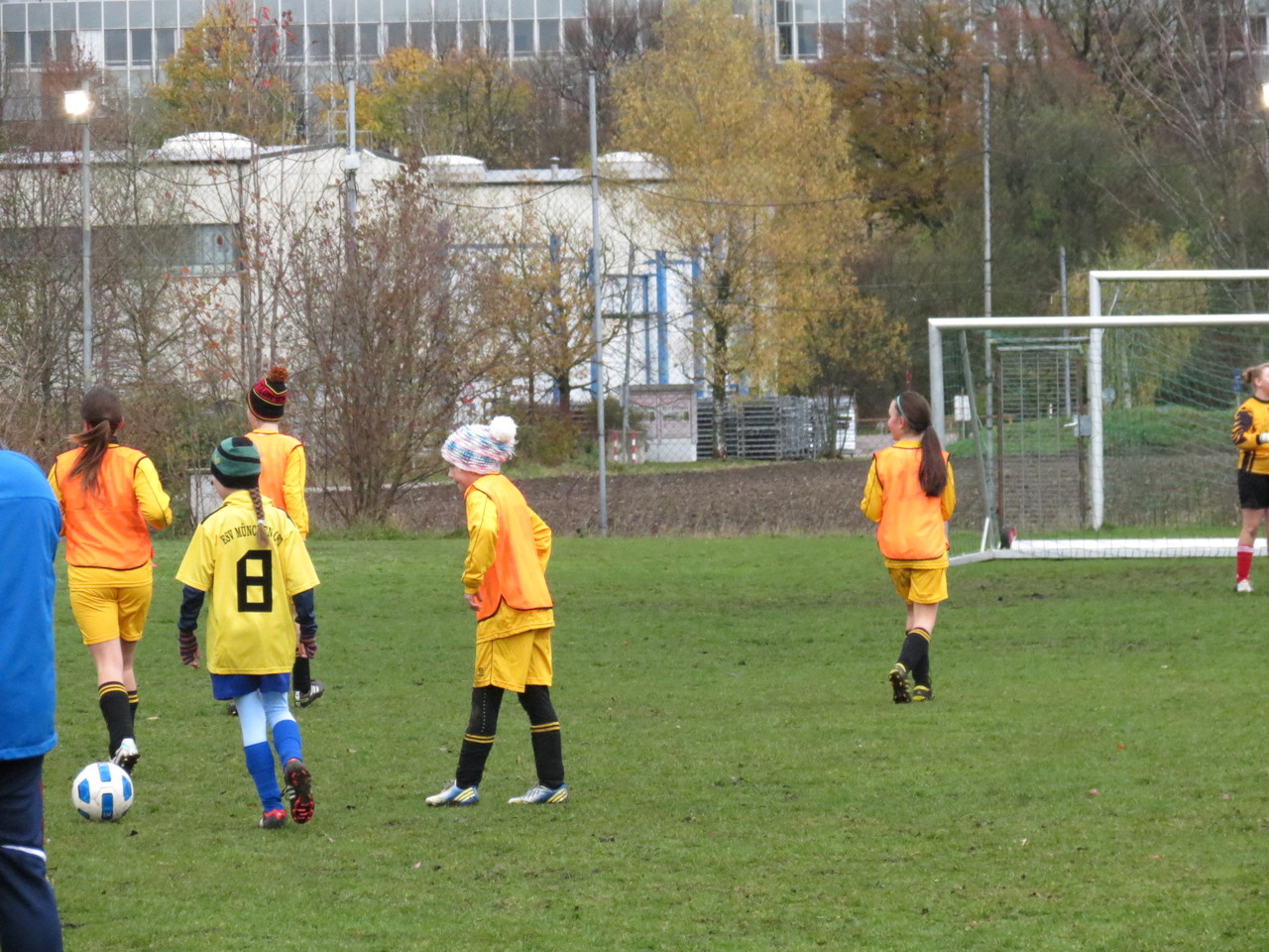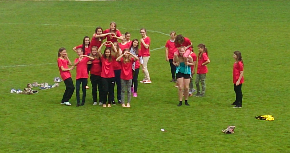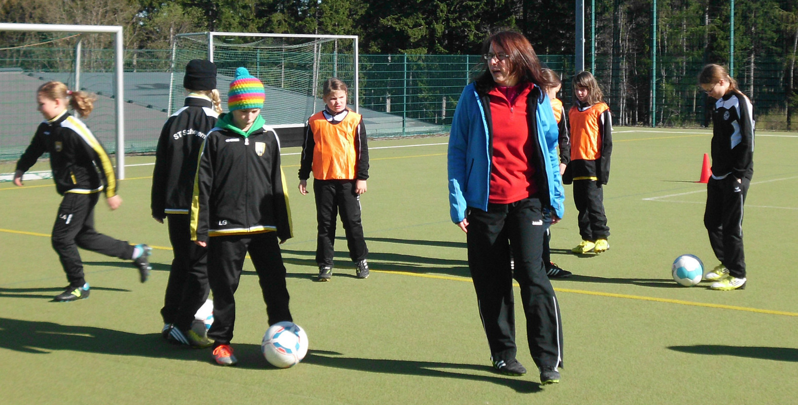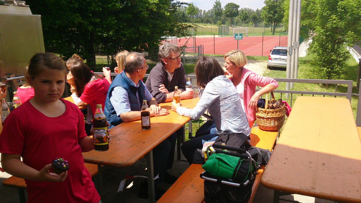 Kabine und zudem auch nur 15 Trikots hatten, trafen wir die Vereinbarung, dass zwei Mädchen (Teresa und Annika) von uns den Gegner unterstützen. So konnten wir doch noch unser 9gegen9 Spiel