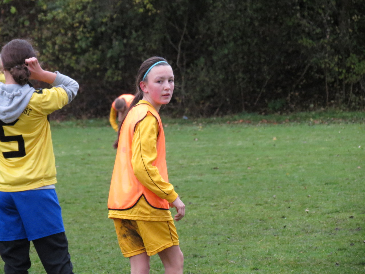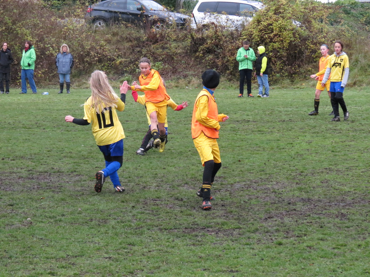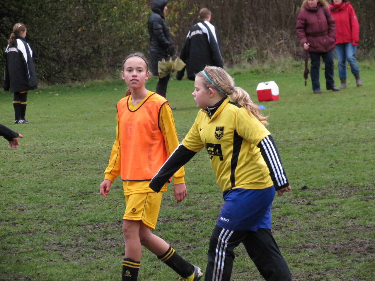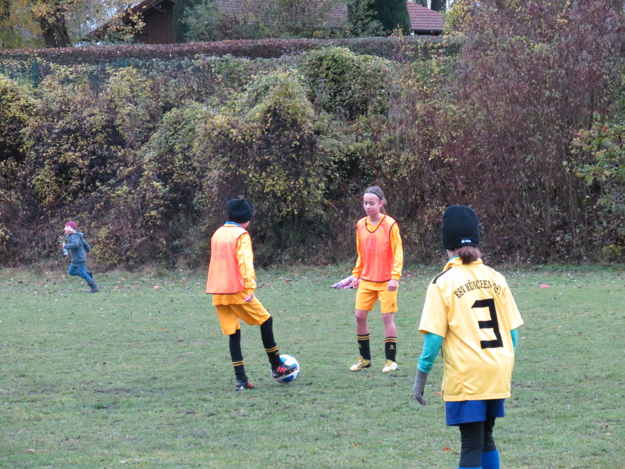 Kabine und zudem auch nur 15 Trikots hatten, trafen wir die Vereinbarung, dass zwei Mädchen (Teresa und Annika) von uns den Gegner unterstützen. So konnten wir doch noch unser 9gegen9 Spiel