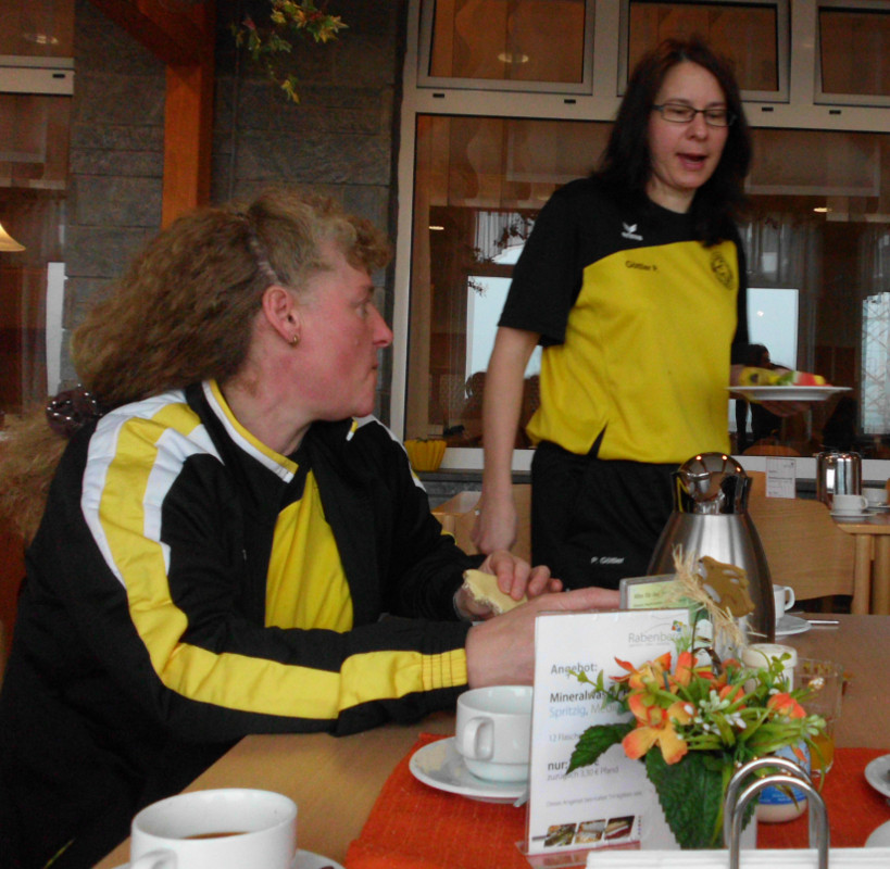Dann ging es zum Frühstück. Jetzt standen die letzten beiden Trainingseinheiten vor uns. Am Vormittag ging es vorrangig um taktische Vorgaben für Abwehr und Angriff, die wir intensiv einübten.