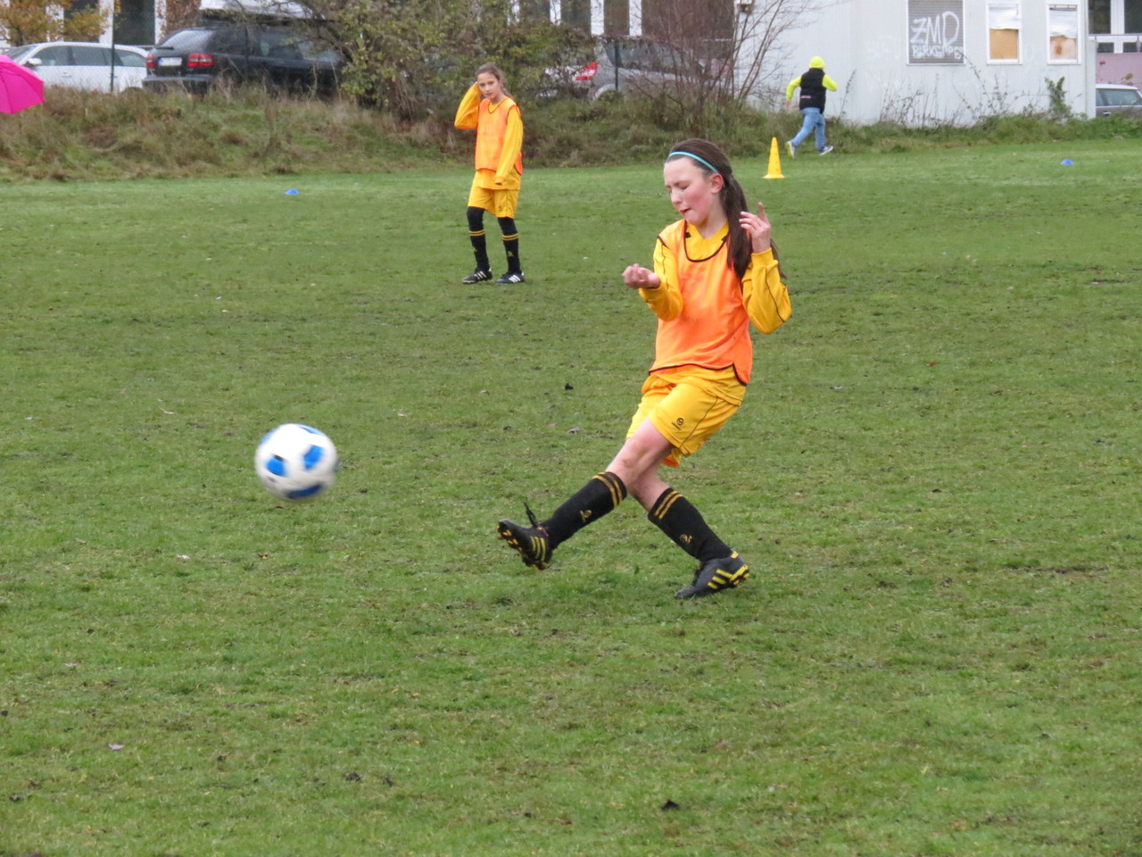 können, schaffte es die Jugendleiterin doch noch, dass wir mit 30-minütiger Verspätung endlich auf den Platz konnten, leider aber ein Kunstrasen.