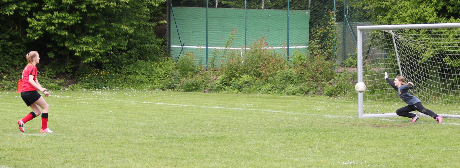 schöner Vorarbeit von Lucia, die nach einer Vorlage von Anika über links in den Strafraum dribbelte und zum Torschuss ansetzte, konnte der Torwart nur nach vorne abwehren. So kam der Ball an der