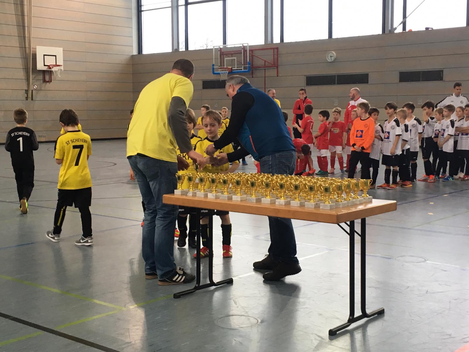 Die Nachwuchskicker aus der G-Jugend (U7) eröffneten am Samstag das Turnier und wurden von den Eltern und den Fans in der voll besetzen Turnhalle lautstark angefeuert. Bis in die Nacht wurde gekickt, die A-Jugendlichen (U19) beendeten ihr Turnier erst gegen 22.30 Uhr. Eine lange Verschnaufpause hatten die Organisatoren und Helfer aus der Jugendabteilung des STS und dem Jugendförderkreis aber nicht. Bereits am nächsten Tag um 09.00 Uhr startete das Turnier der E-Junioren(U11).