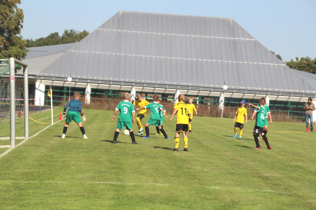 Bei herbstlichen Temperaturen war am Sonntag die E1 des FSV bei uns zu Gast. Wir kamen super ins Spiel und Johannes brachte uns in der 5 Minuten mit 1:0 in Führung. Es war ein flottes E-Jugendspiel mit Möglichkeiten auf beiden Seiten. Eine davon nutzte der FSV in der 15 Minuten zum Ausgleich. Nur eine Minute später Stand Jakob nach einer Ecke Goldrichtig und brachte uns wieder in Führung. Damit ging es auch in die Pause. Eine kleine Unaufmerksamkeit in unserer Hintermannschaft nutzte der FSV in der 29. Minute zum erneuten Ausgleich. Aber nur 2 Minuten später schloss Flo einen blitzsauberen Konter zur erneuten Führung ab. In der 35. Minute erhöhte Flo mit seinem zweiten Tor auf 4:2. Den Schlusspunkt setzte Jakob, wieder Stand er nach eine Ecke richtig und drückte den Ball zum 5:2 über die Linie. Endlich haben wir uns mal für ein gutes Spiel mit einem Sieg belohnt. Klasse Jungs macht weiter so. Das war heute eine super Mannschaftsleitung vom Torwart über die Abwehr durchs Mittelfeld bis zum Sturm.