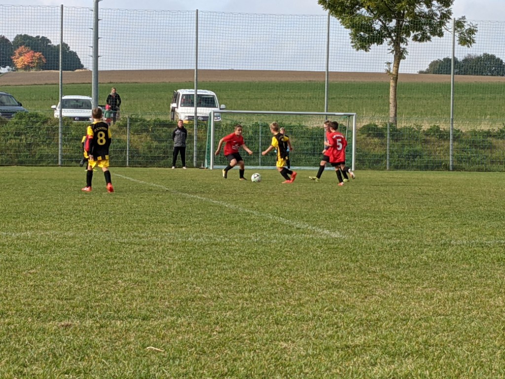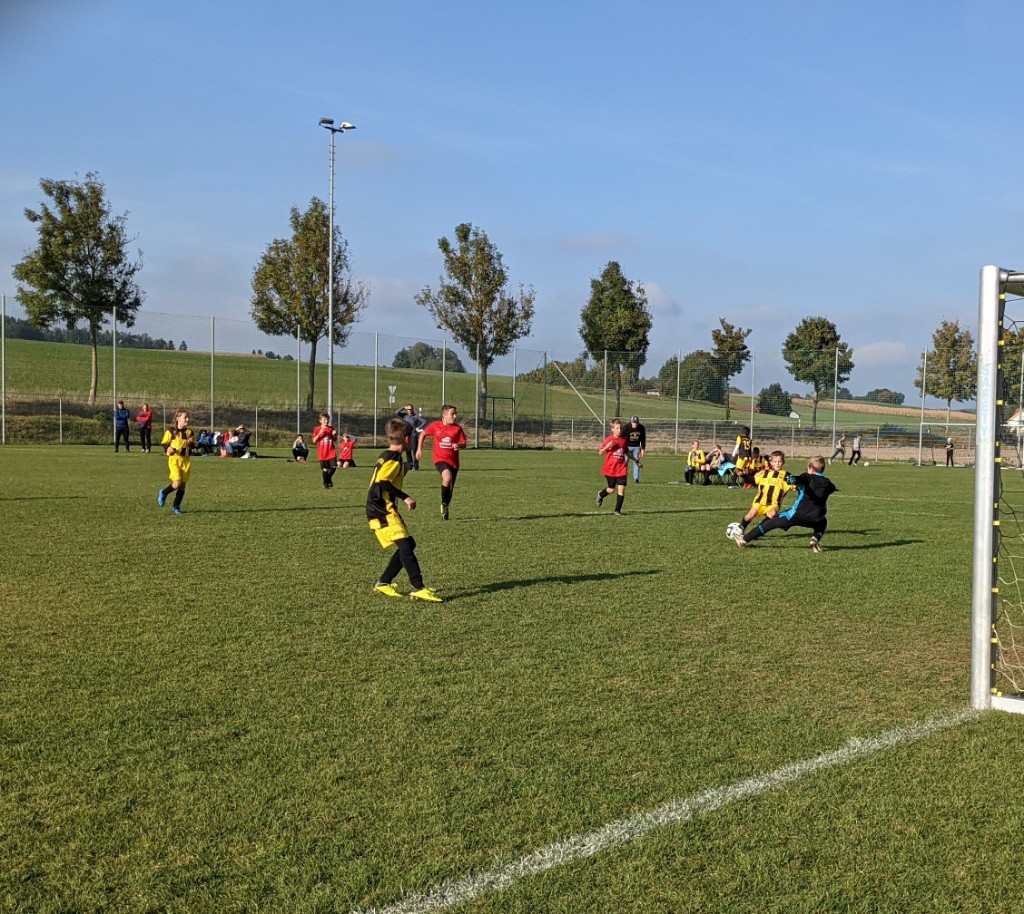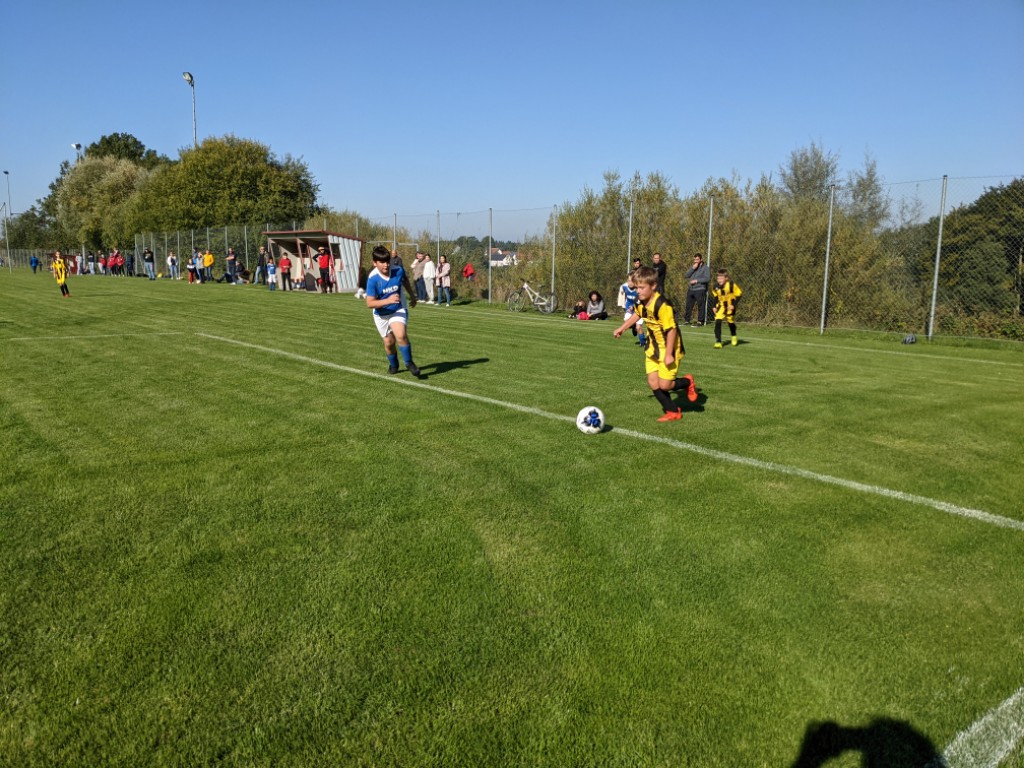 Gleich zu Beginn der zweiten Hälfte glänzte wiederum Julius mit einem richtig tollen Tor, 3:1!! Spielerisch wurden unsere Kicker dann immer sicherer und zeigten richtig ansehnlichen Fußball. Viele Zweikämpfe wurden gewonnen, die Abwehr stand sicher und die dadurch entstehenden Angriffe immer gefährlicher. Leider nicht gefährlich genug, obwohl sie sogar zweimal das Außennetz trafen. Trotzdem haben sie das Spiel verdient gewonnen und belegen verdient den 2. Tabellenplatz